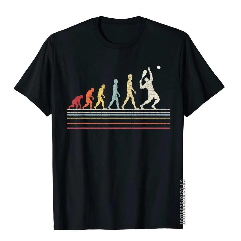 Funny Tennis Evolution Of Man Sport Retro Vintage Gift T-Shirt Youthful T Shirts For Cotton Tops Short Sleeves Plus Size Loose