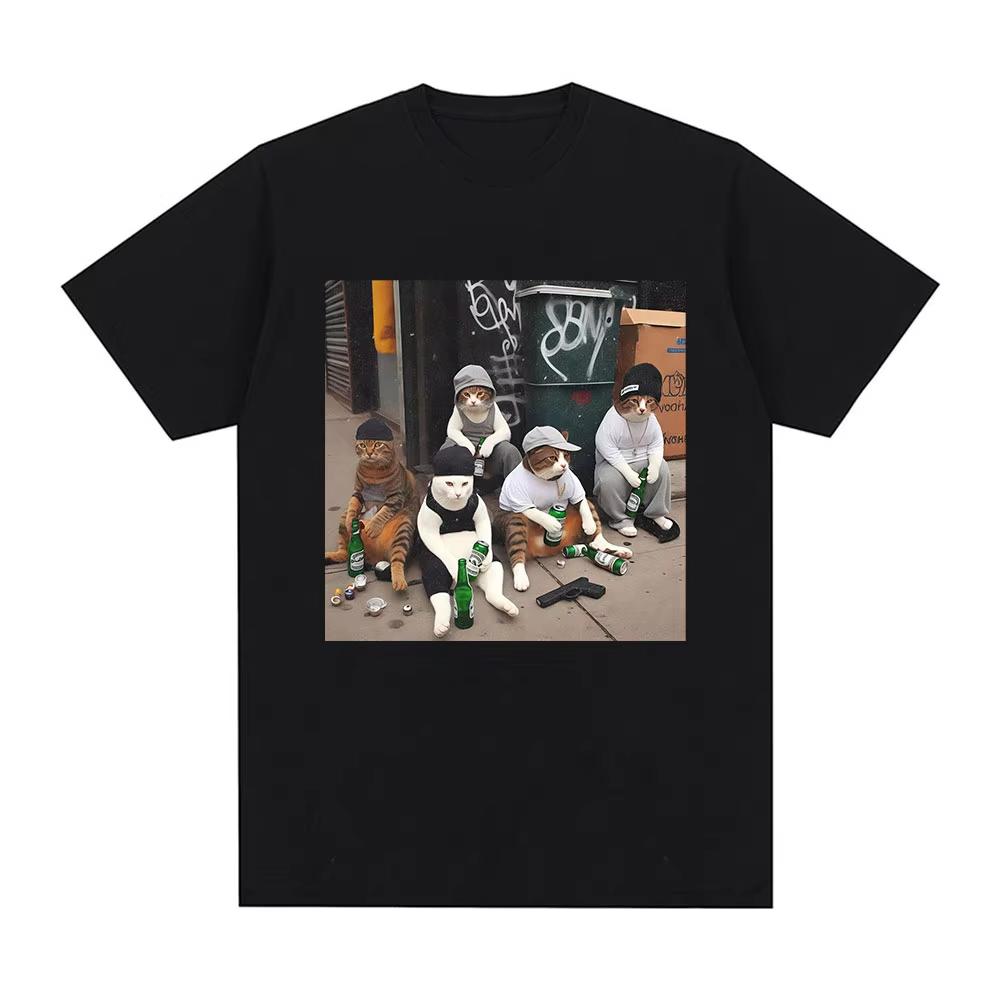 Funny Cat Gang Meme Graphic Print T Shirts Men Women Fashion Vintage Short Sleeve T-shirt High Quality Cotton Summer T-shirts