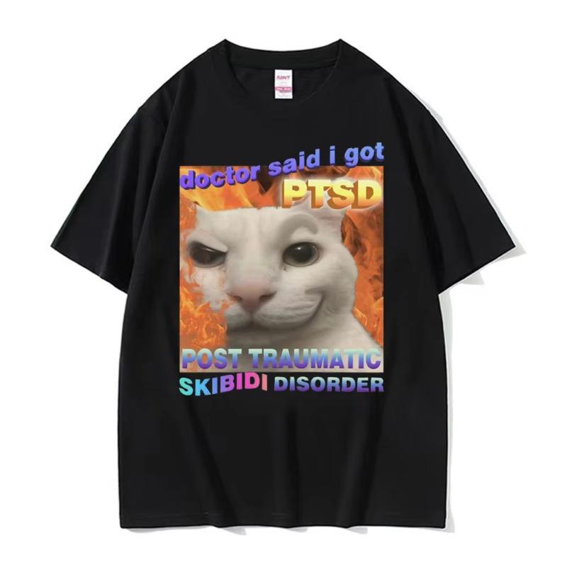Vintage Skibidi Disorder Funny Cute Cat Meme Tee Shirt Gift Men Women Fashion Casual 100% Cotton Short Sleeve T-shirt Streetwear