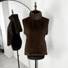 Fashion Faux Fur Sable Vest Crop Top Autumn Winter Turtleneck Eco Mink Fur Tank Tops Sleeveless Jacket Coat