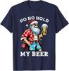 Summer Men's Funny Santa Claus WearingSunglasses Beer Printed Round Neck T-shirt Soft and Breathable Holiday Short Sleeved Shirt