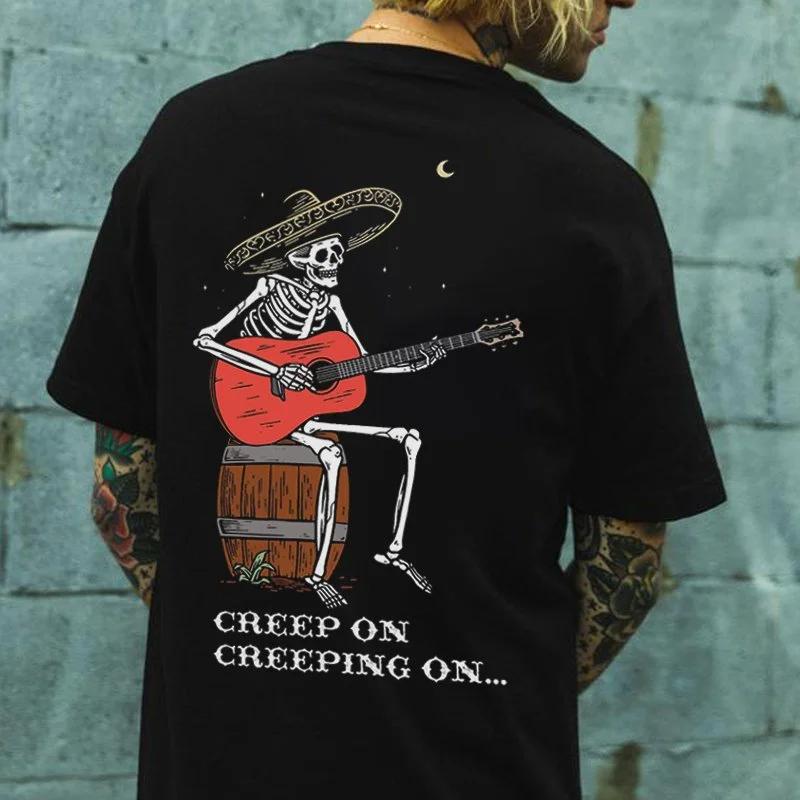 Summer Horror Devil Punk Skull Print Round Neck T-shirt Retro Neutral Casual Cool Hip-hop Street Short Sleeved Halloween