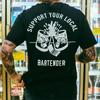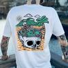 Summer Men's Letter Skull Print Round Neck T-shirt Punk Retro Trend Outdoor Pure Cotton Hip-hop High Street Short Sleeved Shirt