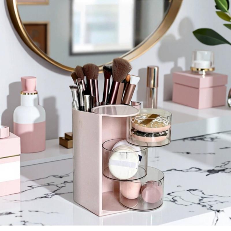 Transparent Cosmetic Storage Box, Divided and Rotated Storage, Earrings, Necklaces, Cotton Swabs Desktop Storage Box
