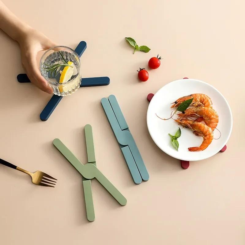Silicone Heat Resistant Pad Foldable Non-Slip Pot Pan Mat Table Placemat Dish Plate Cross Holder Coaster Kitchen Table Placemat