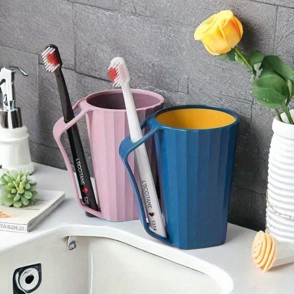 1Pc Durable Reusable Two Color Plastic Cups with Handles,Creative Toothbrush Holder, Wash Cup,Couple's Mouthwash Cup