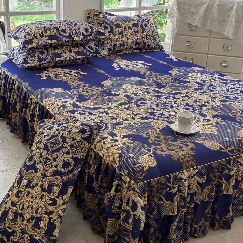 Ruffle Skirt Bedspread Home Textile Printed Bed Skirt Bedroom Coverlets Bedspreads Sheets Dust Cover Bedding 3PCS/Set