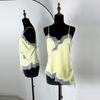 Satin Lace Patchwork Tops Women Camisole 2025 Sexy V Neck Sleeveless Asymmetric Slim Crop Top Camis Embellished Tank Tops Y2K