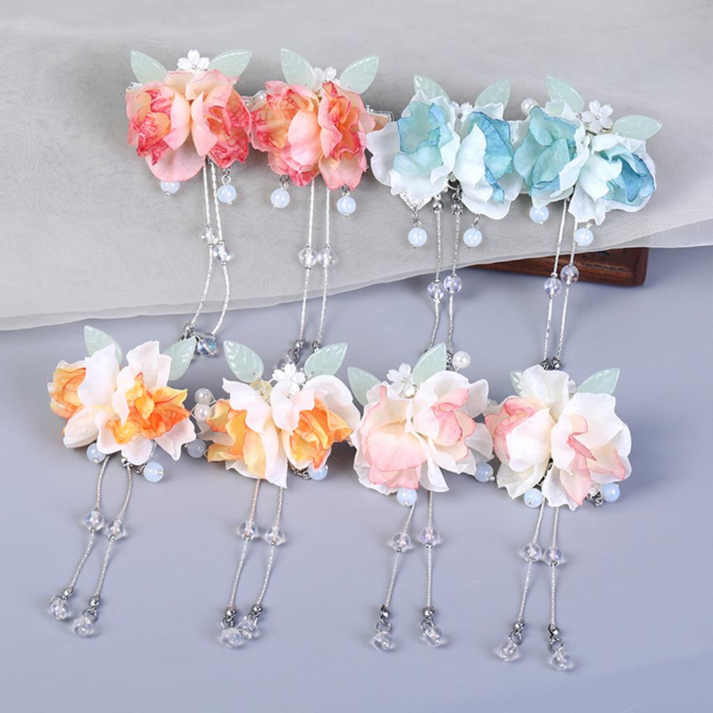 1 Pair Vintage Hair Clips For Women Chinese Style Gauze Flower Tassel Hairpins Handmade Elegant Hanfu Floral Hair Accessories