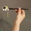 Flower Tassel Hairpin For Women Vintage Wooden Floral Hair Stick Elegant Hanfu Hair Accessories 18cm Updo Meatball Head Hairpins