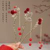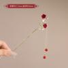 Vintage Chinese Style Rose Hairpin For Women Red Flower Element Tassel Hair Stick Elegant Exquisite Handmade Hair Accessories