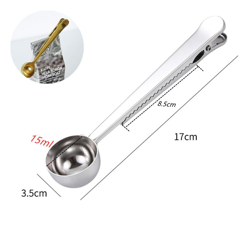 2-in-1 Stainless Steel Coffee Measuring Coffee Scoop Multifunctional Food Sealing Clip Tea Milk Powder Scoop Coffee Accessories