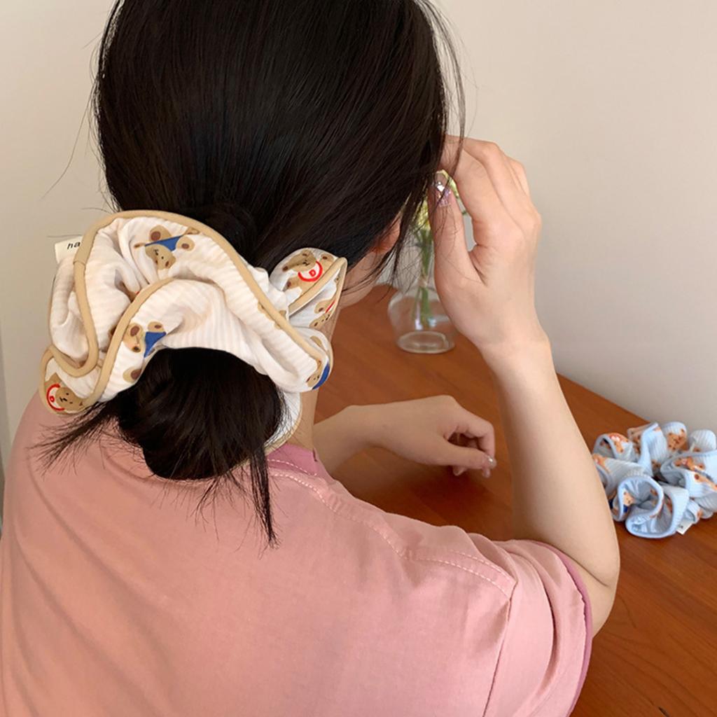 Bear Pattern Scrunchie Hair Tie Cute Korean Style Hair Accessories for Women Girls Ponytail Holder Soft Elastic Hairband