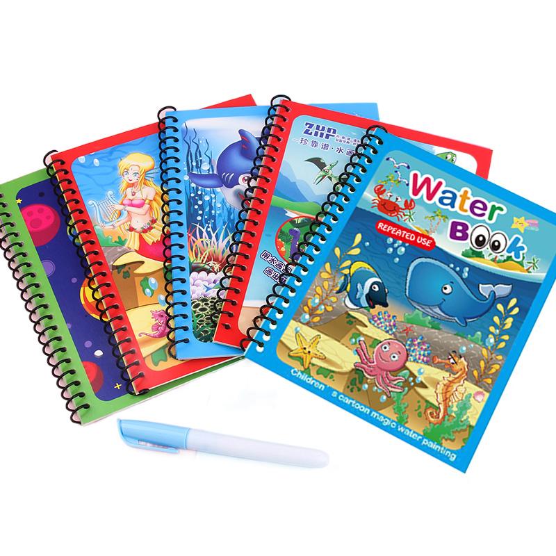 1pc Water Drawing Book with Refillable Water Pen Reusable Magic Painting Drawing Board Cute Cartoon Gift for Boys and Girls TMZ