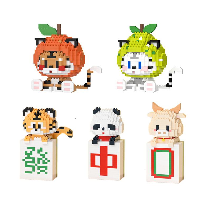 Orange Tiger Mini Building Blocks Big Fortuue And Great Profit Panda Tiger Mahjong Micro Bricks Figures Toy For Kid Gift