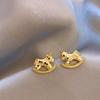 Cute Cartoon Pony Ear Buckle For Women Girl Fashion Versatile Shining Zircon Horse Earrings Jewelry Accessories New Year Gifts