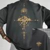 2025 Men's Summer T-shirt Sports Casual Loose Gold Compass Rose Mountain Pattern Printed Round Neck Short Sleeved T-shirt Summer
