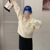 Lapel Half-zipper Short Pullover Sweater Women's Autumn and Winter New Thick Shoulder-plugged Long-sleeved Solid-color Casual Knitted Top
