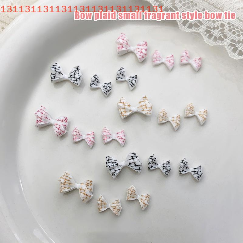 20Pcs For Creative Nail Design Checkered Plaid Resin Bows Nail Charms Ties Nail Art DIY Decorations