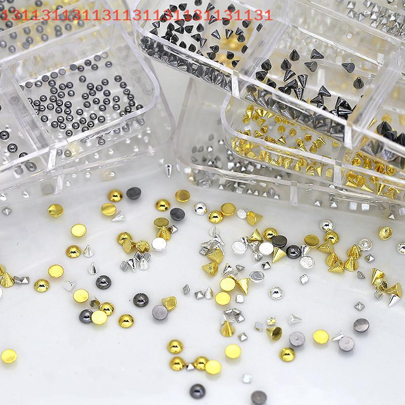 6 Grids Punk Nail Rivets Silver Gold Black Mixed Size Metal Bead Studs Round Cone Nail Art Charms Nail Parts DIY Decoration
