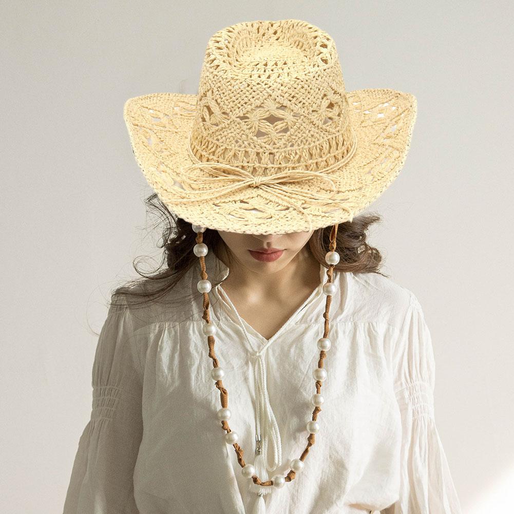 Hand-woven Western Cowboy Straw Hats Summer Outdoor Men Women Wide Brim Breathable Beach Jazz Cap Sun Protection Hat