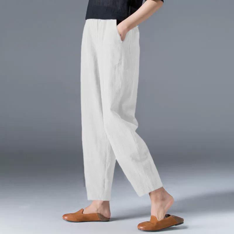 Women's Baggy Pants Cotton Linen Wide Leg Trousers Casual Elastic Waist Patchwark Harem Pants