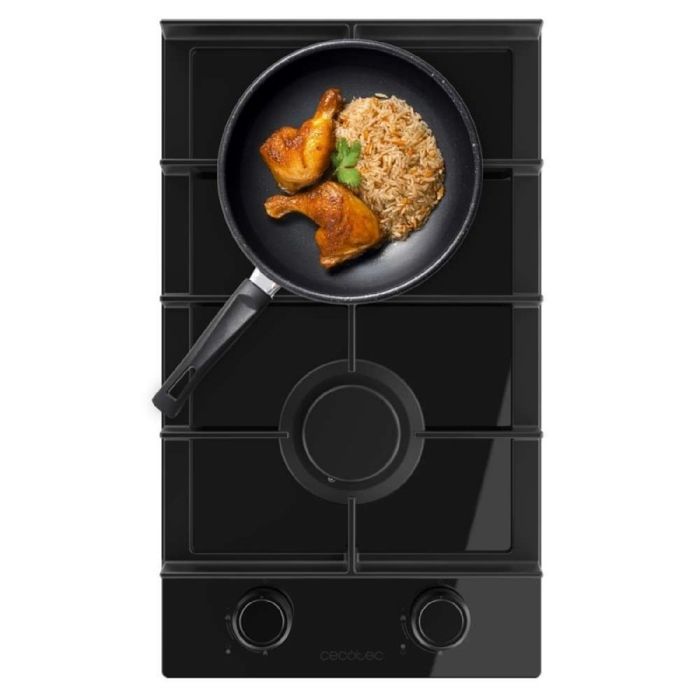 Cecotec Plaque de gaz 2 feux Bolero Squad G 2400F Glass Black 52kW Verre noir Grilles fonte Brûleur WOK