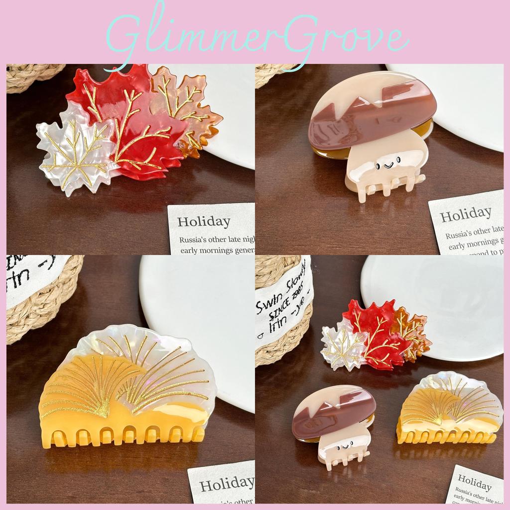 Adorable Acetate Hair Clips With Unique Maple Leaf And Cute Mushroom Shapes