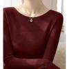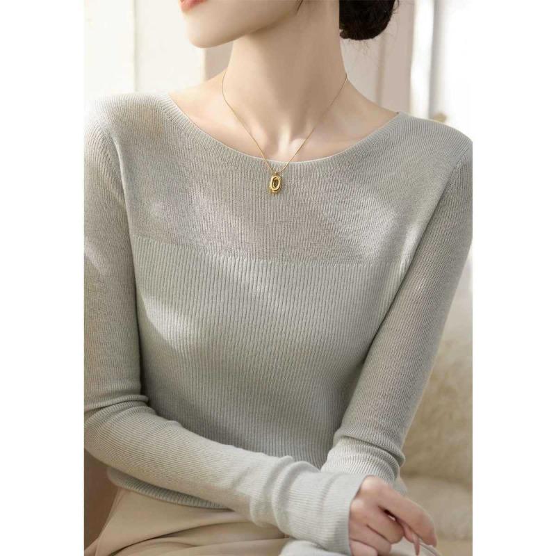 Core-spun Yarn New Long-sleeved Wool Top Women's Versatile Solid Color Design Sense One-word Collar Inner Backing Knitted Sweater