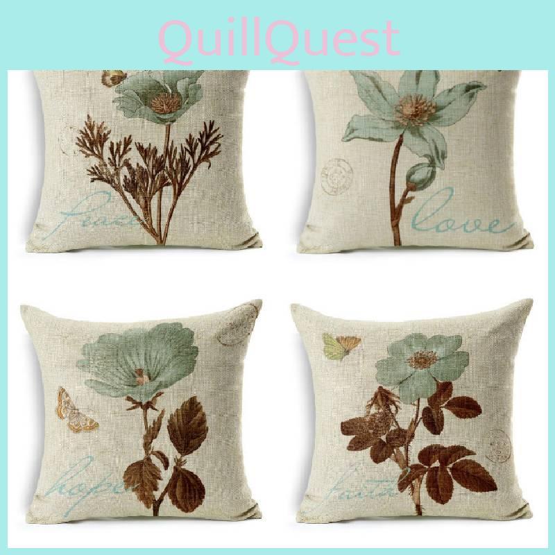 Nature Inspired Pillowcase With Flowers And Green Leaves For Home Decor And Couch Cushion
