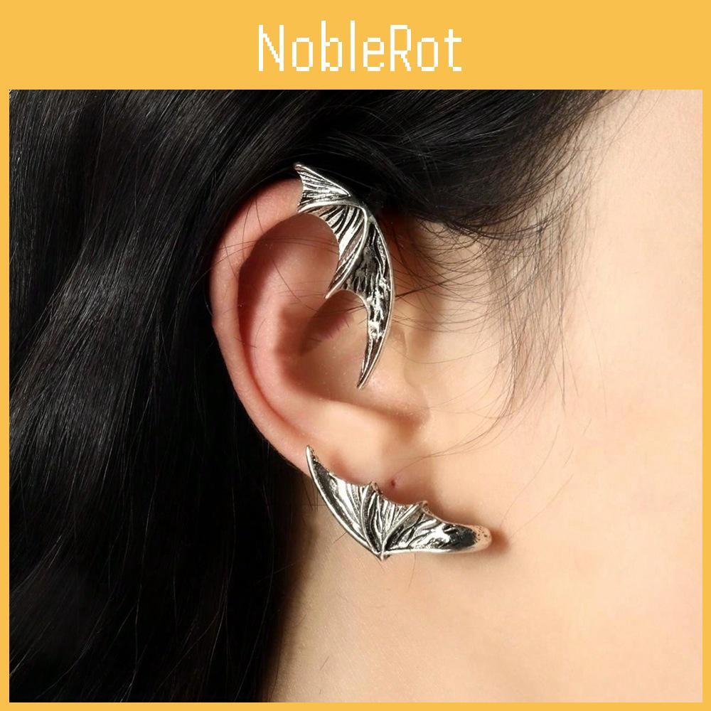 This Halloween-themed earring set features vampire bat designs crafted from durable alloy with electroplated finishing for a sleek look. designed as ear cuffs and hooks suitable for non-pierced ears. Ideal for costume parties or themed events, these earrings add a gothic touch to any outfit. To maintain their shine, wipe with a soft cloth after use.