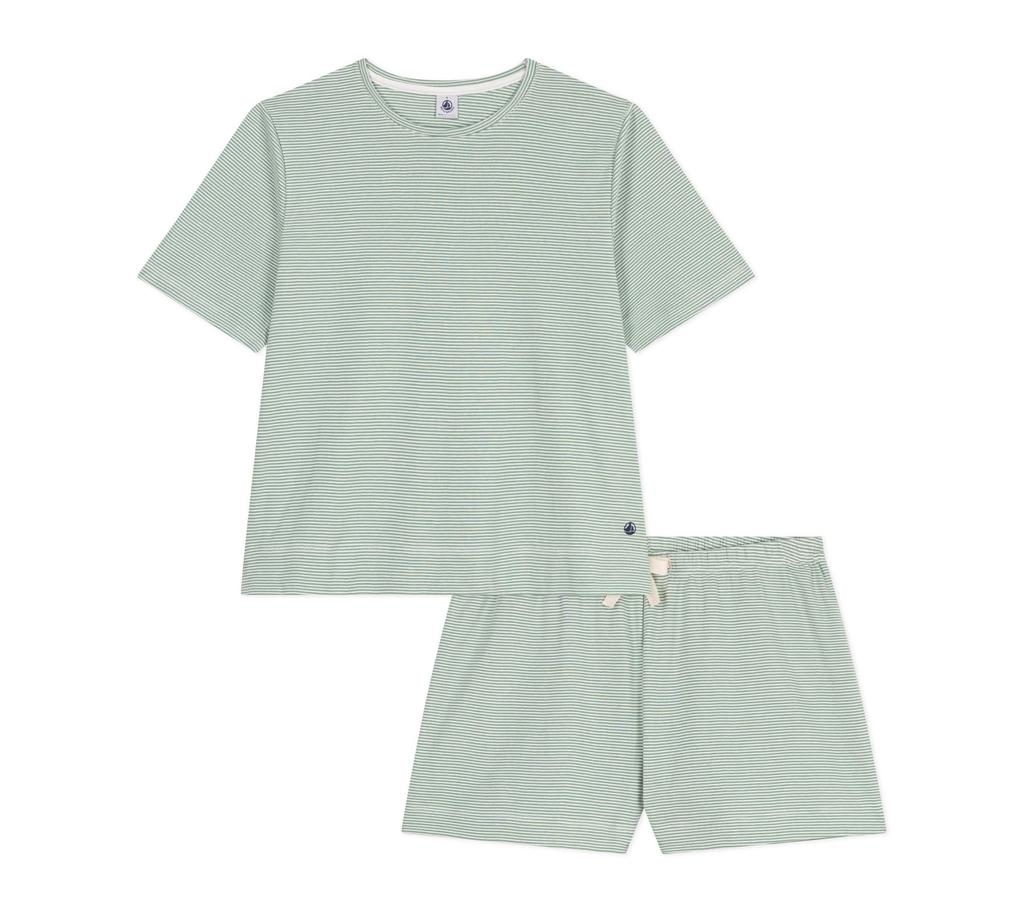 These short-sleeved pajamas feature the brand's signature ultra-fine Mirale border. Crafted from eco-friendly, 1x1 ribbed cotton, so soft it feels like a second skin, they're incredibly comfortable to wear. Not only are they perfect for relaxing at home or sleeping, they also make a wonderful gift. Note: The print is not permanent and may crack with rubbing or friction, or fade or come off with repeated washing. Wash separately with a mild detergent.