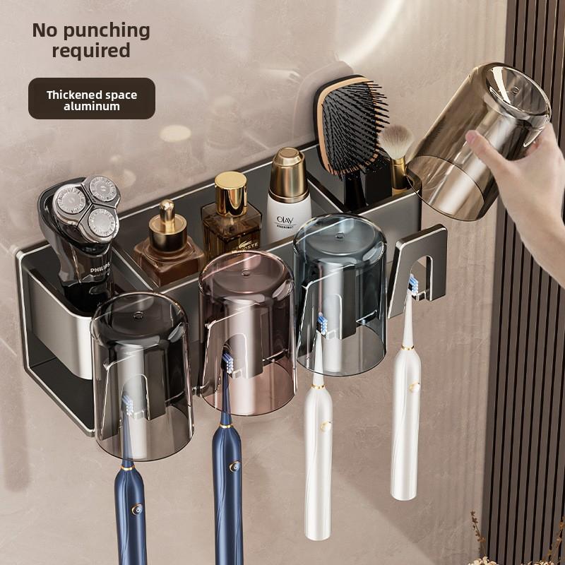 Toothbrush Holder No Need Drilling Toothbrush Cup Mouthwash Cup Wall Mounted Storage Bathroom Restroom Cup Holders With Cups