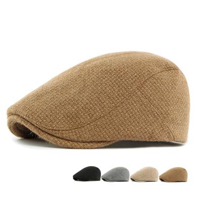 Autumn Winter Warm Hat Men's Beret British Retro Wool Forward Cap Peaked Cap