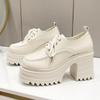 Fashion Black White Punk Rock Gothic Pumps Women Chunky Block High Heels Shoes Round Toe Lace Up Thick Platform Heel Shoes 2024