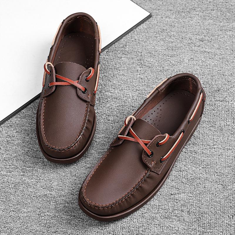 Fashion Luxury Genuine Leather Mens Casual Shoes Designer Business Breathable Formal Classic Lace Up Leather Dress Loafers Driving
