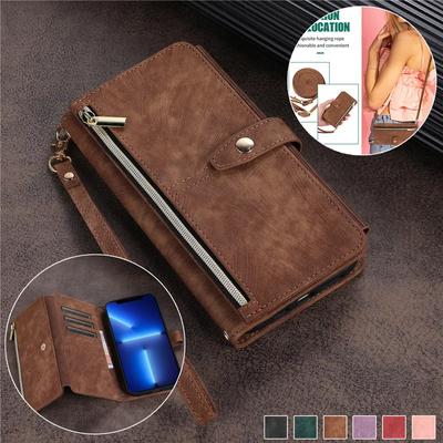 Crossbody Wallet Multi Card Flip Lanyard Leather Case for iPhone 15 14Plus 13 12 11Pro Max XS Max 8P 7P/Samsung S23 S22 S21 S20Ultra Plus A14 A54 A53
