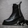 Fashion England Style Men Luxury Fashion High Platform Boots Lace-up Black White Shoes Original Leather Boot Handsome Motorcycle Botas