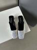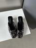 Fashion Square Toe Women Slides Slippers Summer Outside Dress Shoes Black Silver 2024 New Arrivals Party Thin Low Heels Sequined Cloth