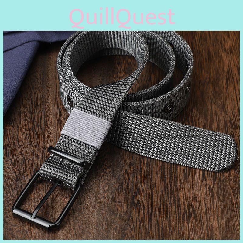 Mens Woven Fabric Belt With Pin Buckle In Black For Business Casual And Daily Wear