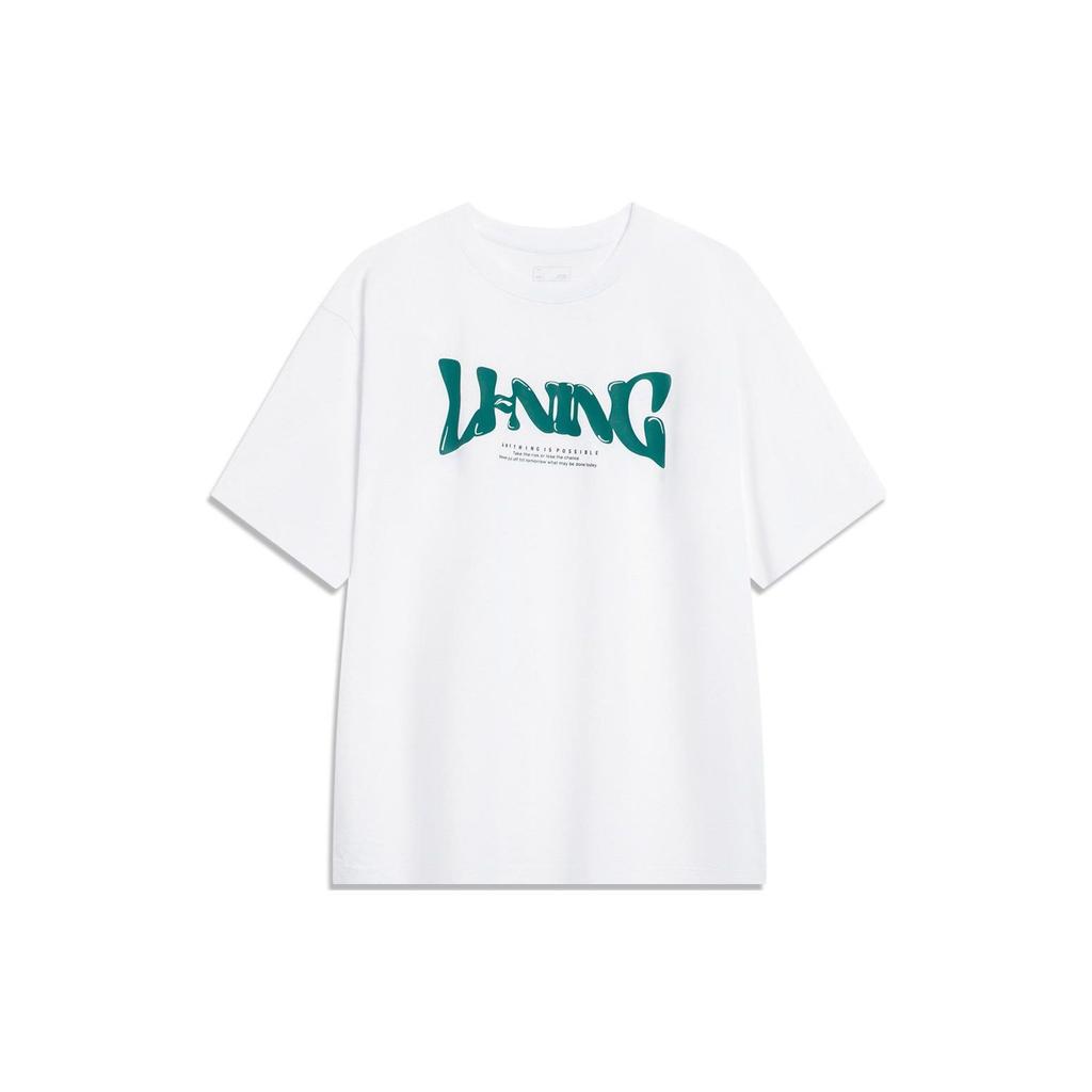 Li Ning Sports Fashion Series Logo Letter Print Round Neck Drop Shoulder Loose Comfortable Short Sleeve T-Shirt Men T-Shirt Standard-White AHSU747-2