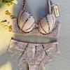 Europe Sexy Push Up Bra Set Women Lace Embroidery Lingerie Fashion Leopard Print Adjustable Strap Bra DE Cup Plus Size Underwear