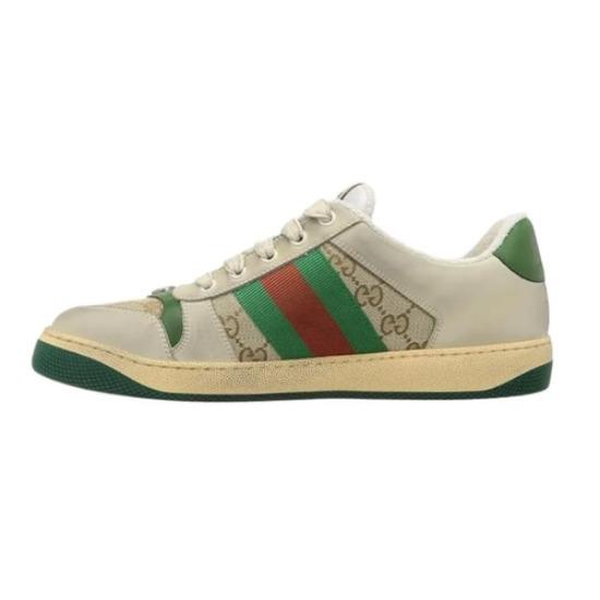 Gucci Screener Leather GG Enameled Aged Lace-up Low Fashion Board Shoes Men's