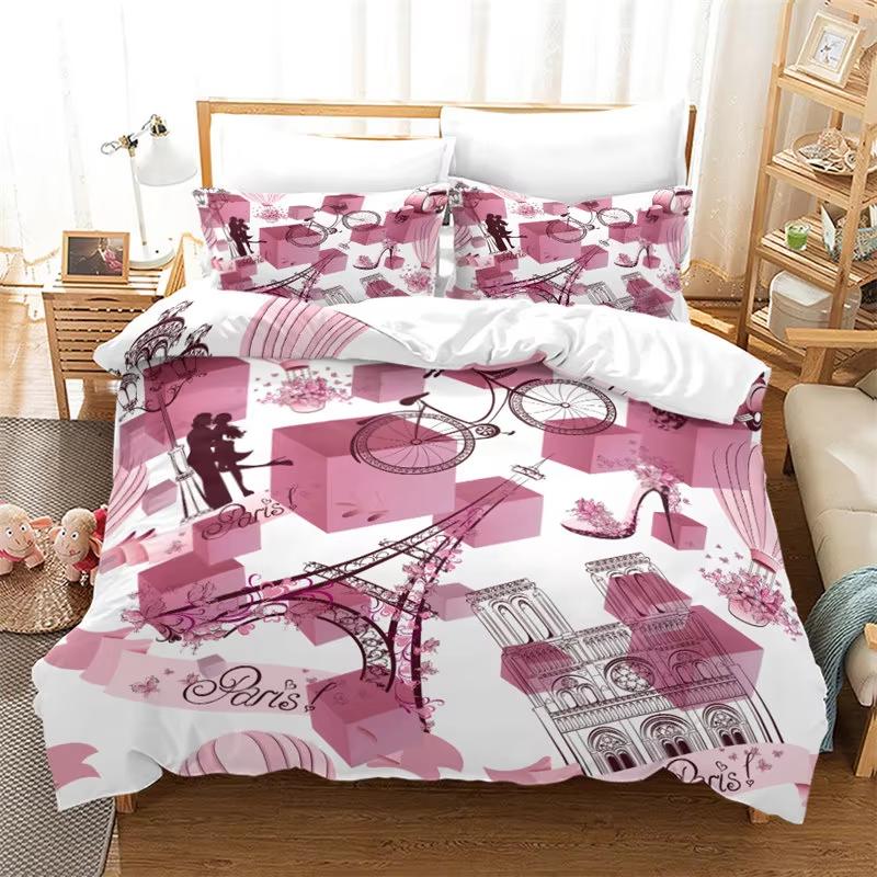 Eiffel Tower Duvet Cover Set Paris Twin Full Queen King Bedding Set For Girl Women Couple Room Romantic Theme Comforter Cover