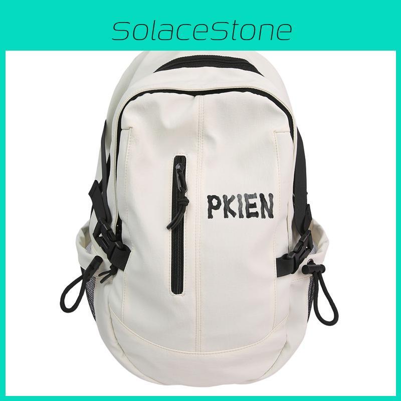 This large-capacity outdoor backpack features a lightweight nylon construction. Its ergonomic curved shoulder straps support comfortable carrying during daily commuting, travel, or school activities. Wipe clean with a damp cloth to maintain its sleek, solid-colored design with contrasting accents.