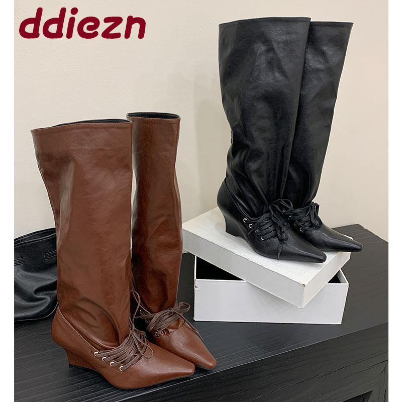 Fashion Shoes With Wedges Women Knee High Boots Female Slip On Shoes Fashion Pointed Toe Party Ladies Long Modern Boots Pumps