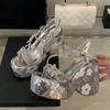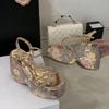 Fashion Liyke New Fashion Sequined Flowers Platform Wedge Sandals Women Open Toe Crystal Rhinestone Butterfly High Heels Party Prom Shoe