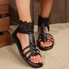 Fashion 2025New Summer Sandals Square Head Woven Bag with Back Zipper Soft Sole Anti-slip Wear-resistant Flat Shoes Women Shoes