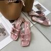 Fashion 2024 Flats Slippers Women Square Toe Sandals Beach Walking Shoes Summer Open Toe Slides Slingback Flip Flops Zapatillas De Mujer