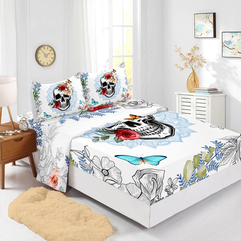 Mattress Sheet 3D Printed Skull Halloween Four-Piece Mattress Protective Cover Bedding Batch